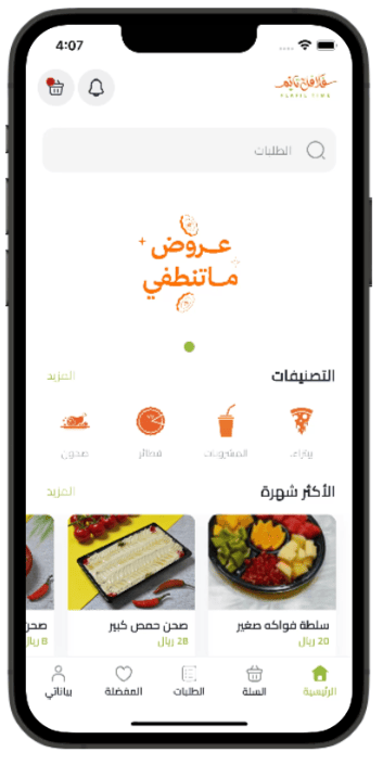 الطلبات ، الدفع الإلكتروني ، الإشعارات ، توصيل