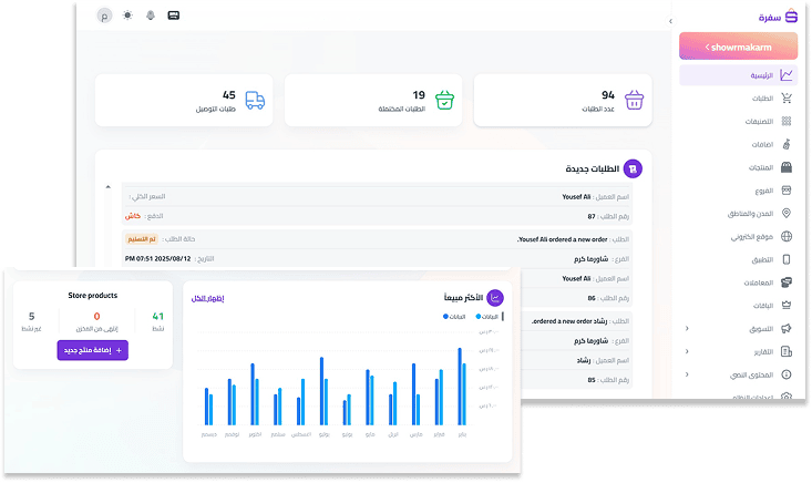 للطلبات والتوصيل. كل هذا تلاقيه في منصة وحدة سهلة الاستخدام وبواجهة عربية 100%.